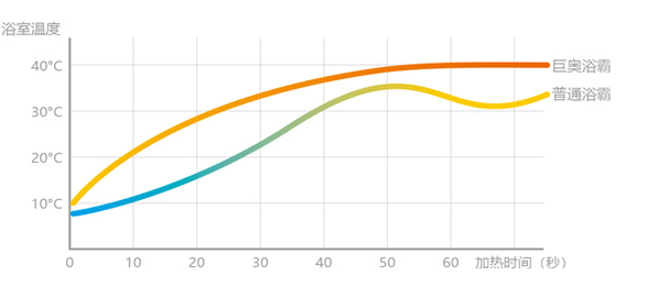 普通浴霸在升溫過程中易出現(xiàn)上下浮動,以致在洗浴過程中人們會感到忽冷忽熱, 一定程度上大大降低了沐浴體驗性。巨奧高制熱量系統(tǒng)設計,升溫勻速,把控溫度。